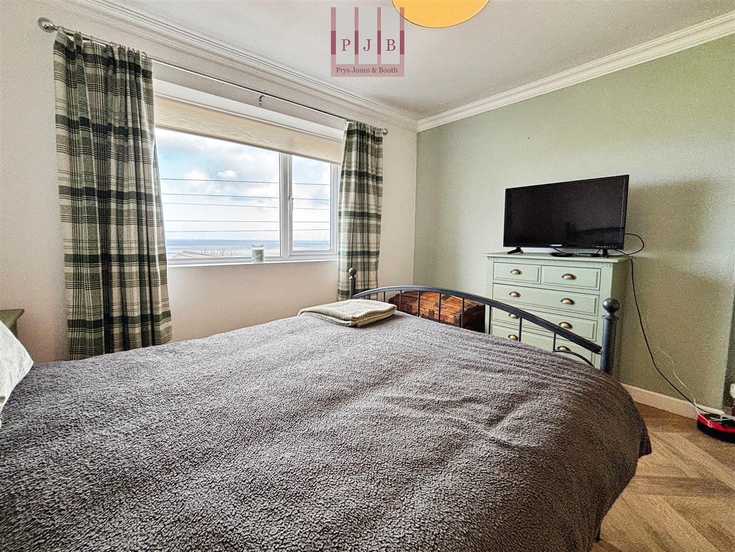 The primary bedroom, situated to the rear of the property, is a well-proportioned double room laid with cushion flooring in a herringbone pattern. There is ample space for a dressing table and drawers along with freestanding wardrobes, and you are sure to enjoy the stunning sea views each morning.