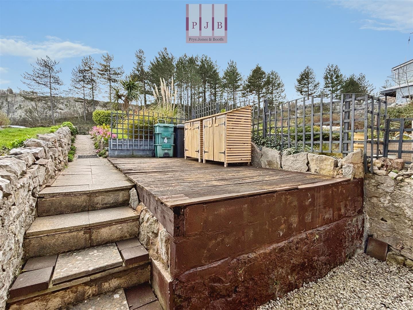 Accessible from the kitchen, the compact garden enjoys stunning views of the Irish Sea. The vendor has installed new timber decking, giving the garden a sleek design, and there is a useful timber storage container.