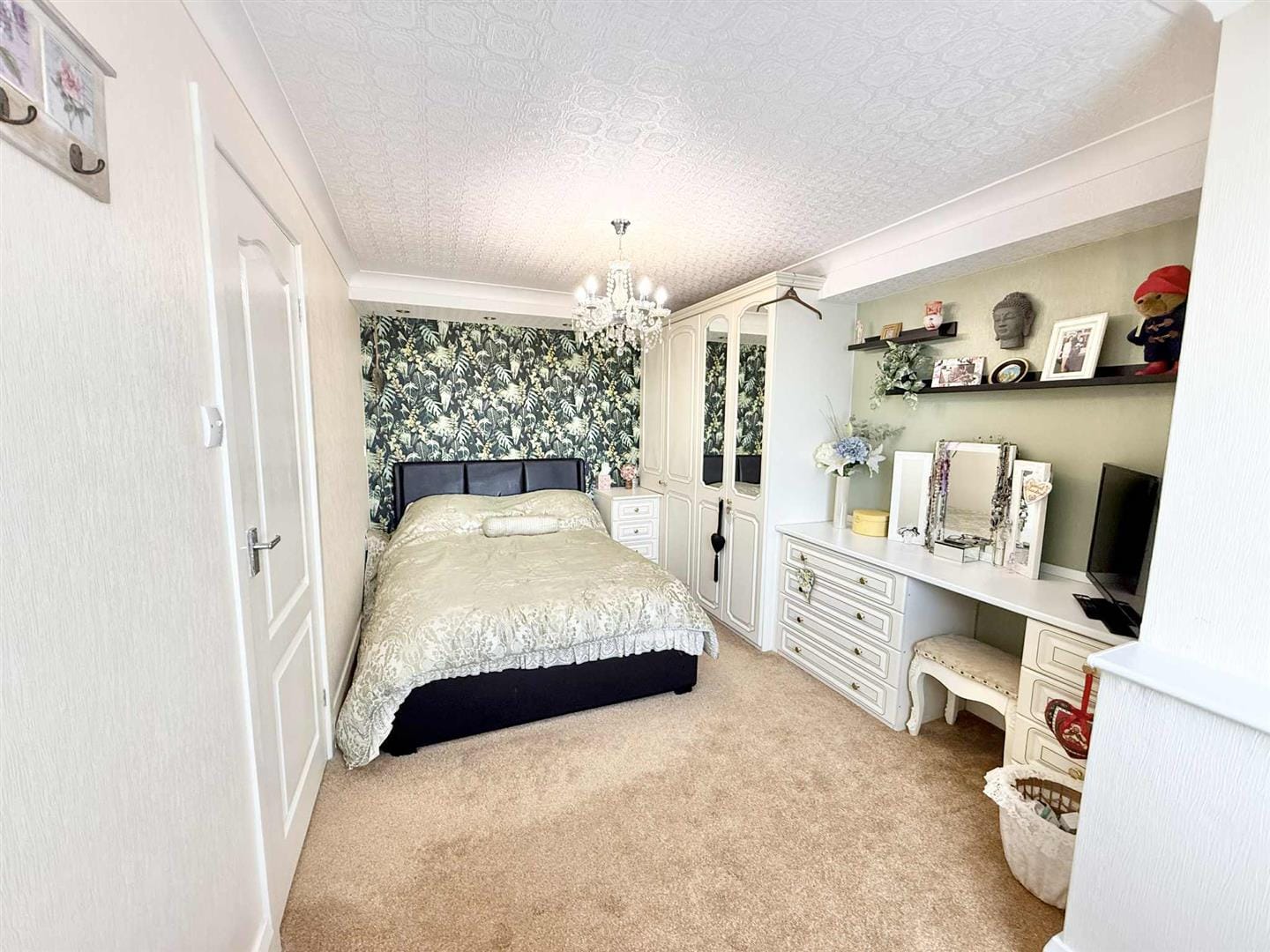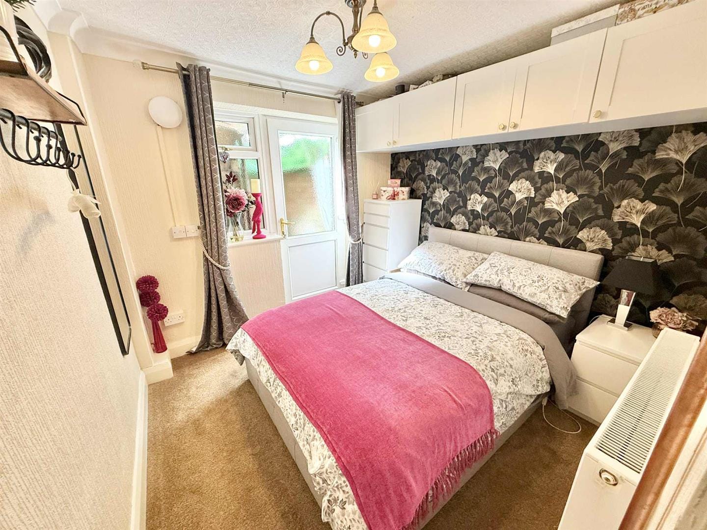 The principal bedroom is a peaceful retreat, complete with built-in storage and a stylish en-suite shower room. A second generous double bedroom also features fitted storage, while the third double bedroom—set to the rear of the property—boasts direct access to the outdoors, perfect for guests or flexible use. A well-appointed family bathroom, positioned at the back of the home, completes the lower level.