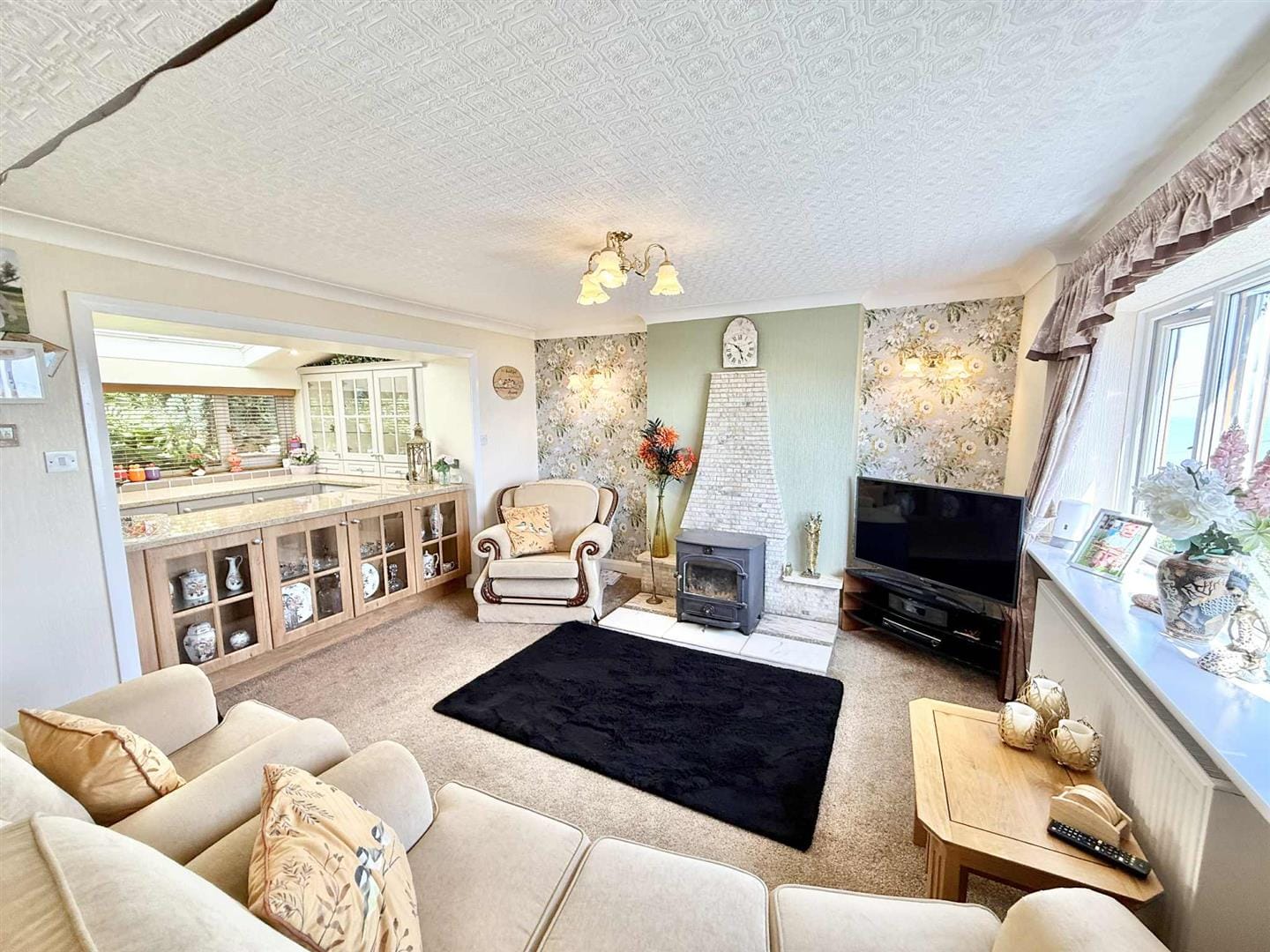 • Spacious open-plan living/dining area with log burner