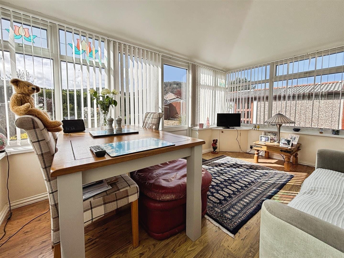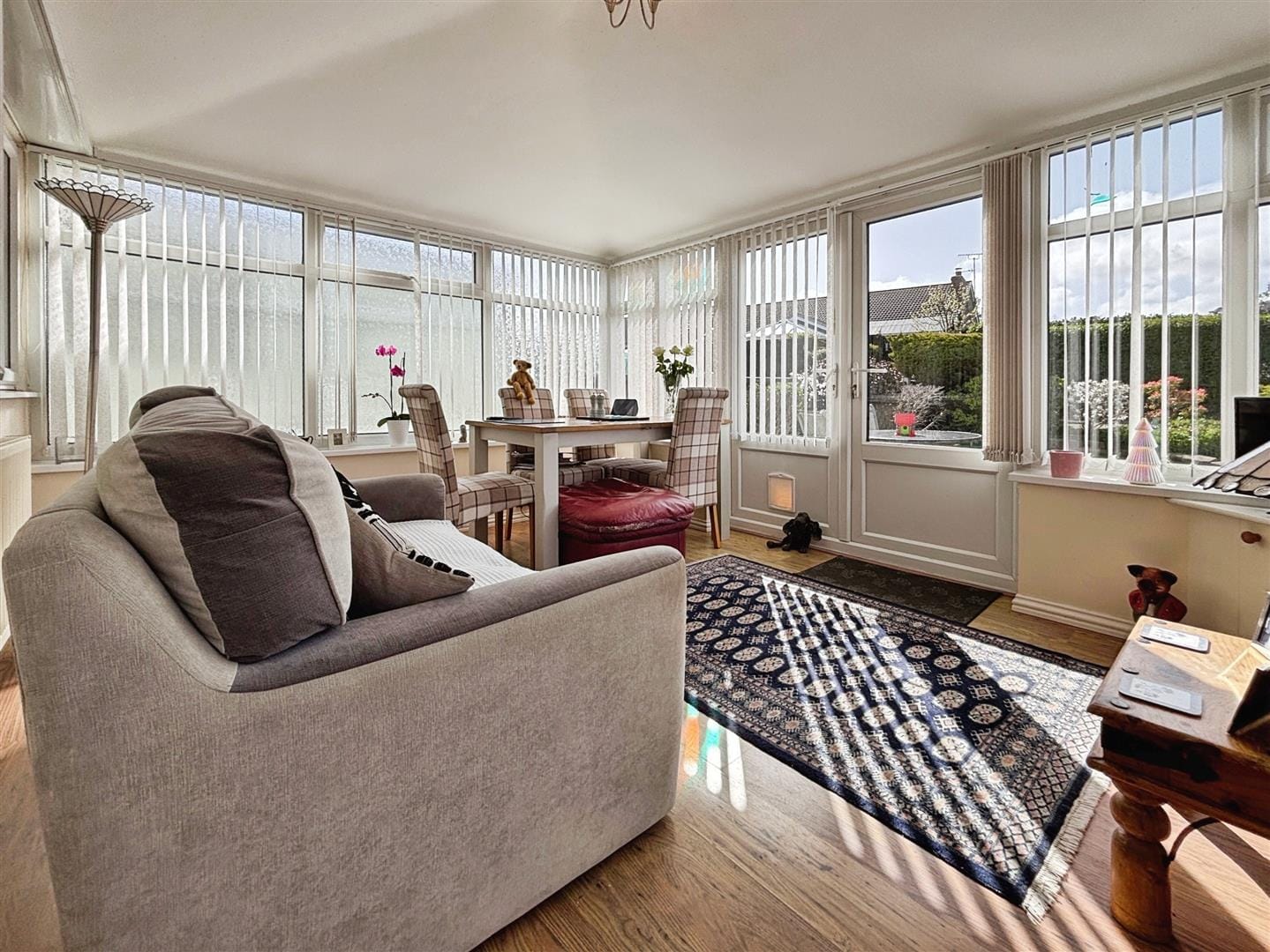 The conservatory is a generous and versatile addition, designed for year-round use with its insulated roof. Currently utilised as a second reception room, it offers a peaceful space to relax while enjoying views across the garden and woodland beyond. Patio doors provide direct access to the rear garden, seamlessly blending indoor and outdoor living.
