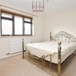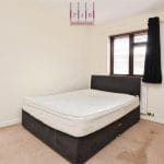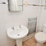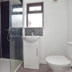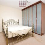 The main bedroom sits to the front of the property and features a contemporary semi-fitted wardrobe and a fully tiled en-suite shower room with folding screen, hand wash basin, WC, chrome towel rail and mirrored cabinet.