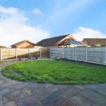 Outside, the south-facing rear garden is a real highlight, enjoying sunshine throughout the day. A large paved patio provides the perfect space for outdoor furniture and summer dining, while a small stone-chipped area, lawn and raised flowerbeds edged with timber sleepers create a pleasant and low-maintenance outdoor setting. The garden is securely enclosed by timber fencing and a brick wall, with space for a shed, an outside tap and access around both sides of the property.