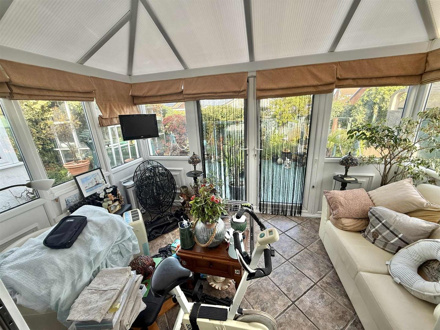 To the front of the property there is ample off-road parking with brick paved drive and an assortment of matured bushes with a drive leading to a single garage with up and over door. The property has access around the side to the rear garden which is enclosed with a greenhouse, pond and decking area. A large conservatory leads off the lounge onto the decking area.