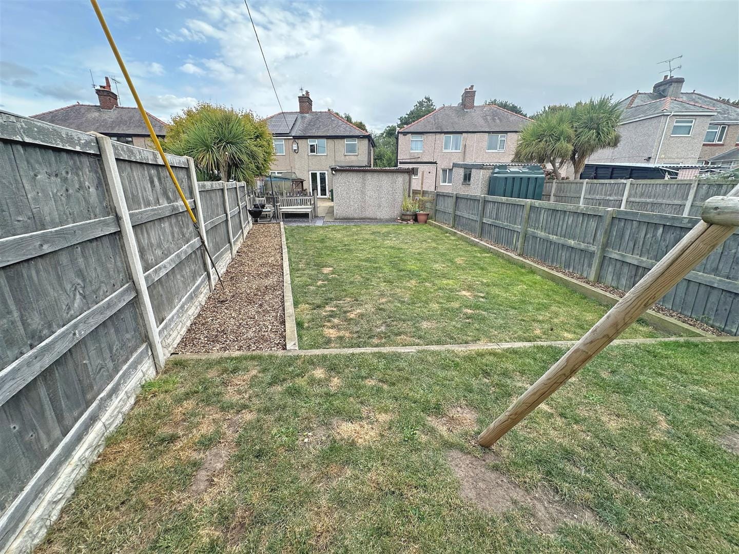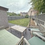 Outside, the west-facing rear garden has been landscaped for both beauty and practicality, divided into three distinct areas. Directly outside the dining room doors, a large paved patio is perfect for outdoor dining and gives access to the single garage, which also houses the 2,500L oil tank and enclosed oil boiler. Beyond, a stone-chipped seating area provides a suntrap for relaxation, while a neat lawn — framed by decorative stone borders — offers an ideal play space for children. The garden is enclosed by timber fencing and enjoys plenty of sunshine throughout the day and into the evening.