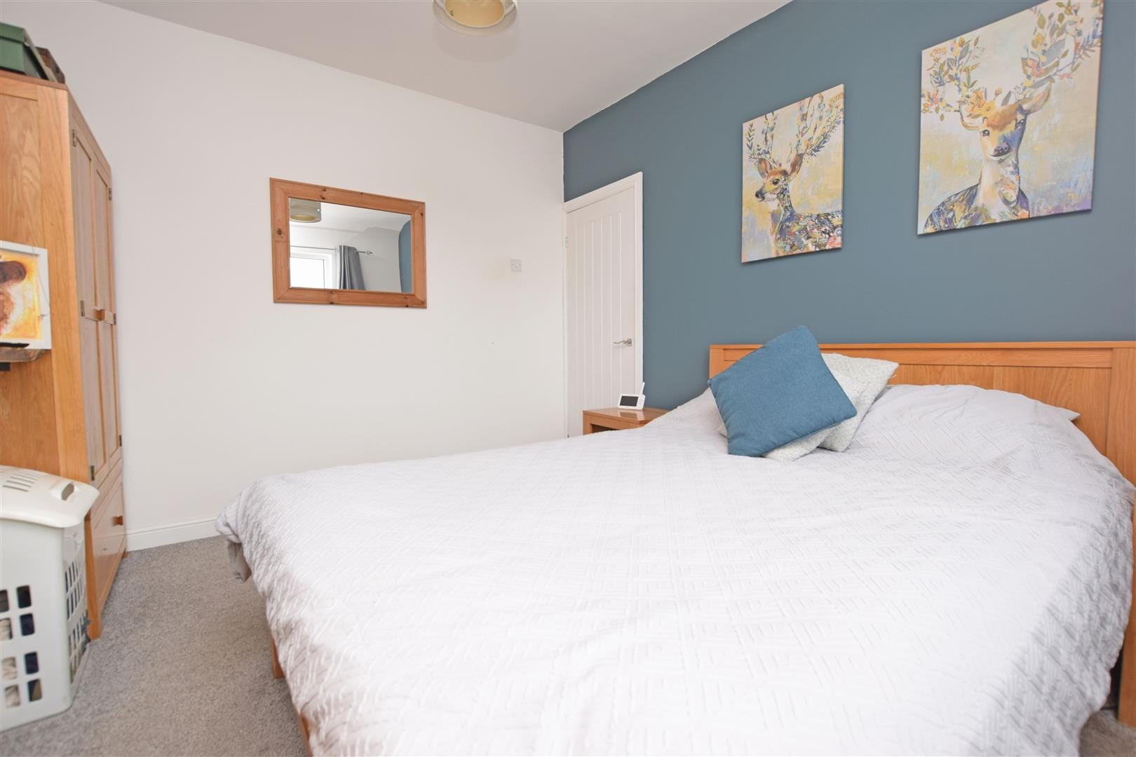 Upstairs, the first-floor landing is light and airy thanks to a side window, with a built-in cupboard for linen storage. The primary bedroom is generously proportioned, with a characterful chimney breast flanked by alcoves ideal for wardrobes. The second bedroom mirrors this layout, also offering excellent space. The third bedroom is a versatile single room, perfect for a child’s bedroom, guest room, or home office.