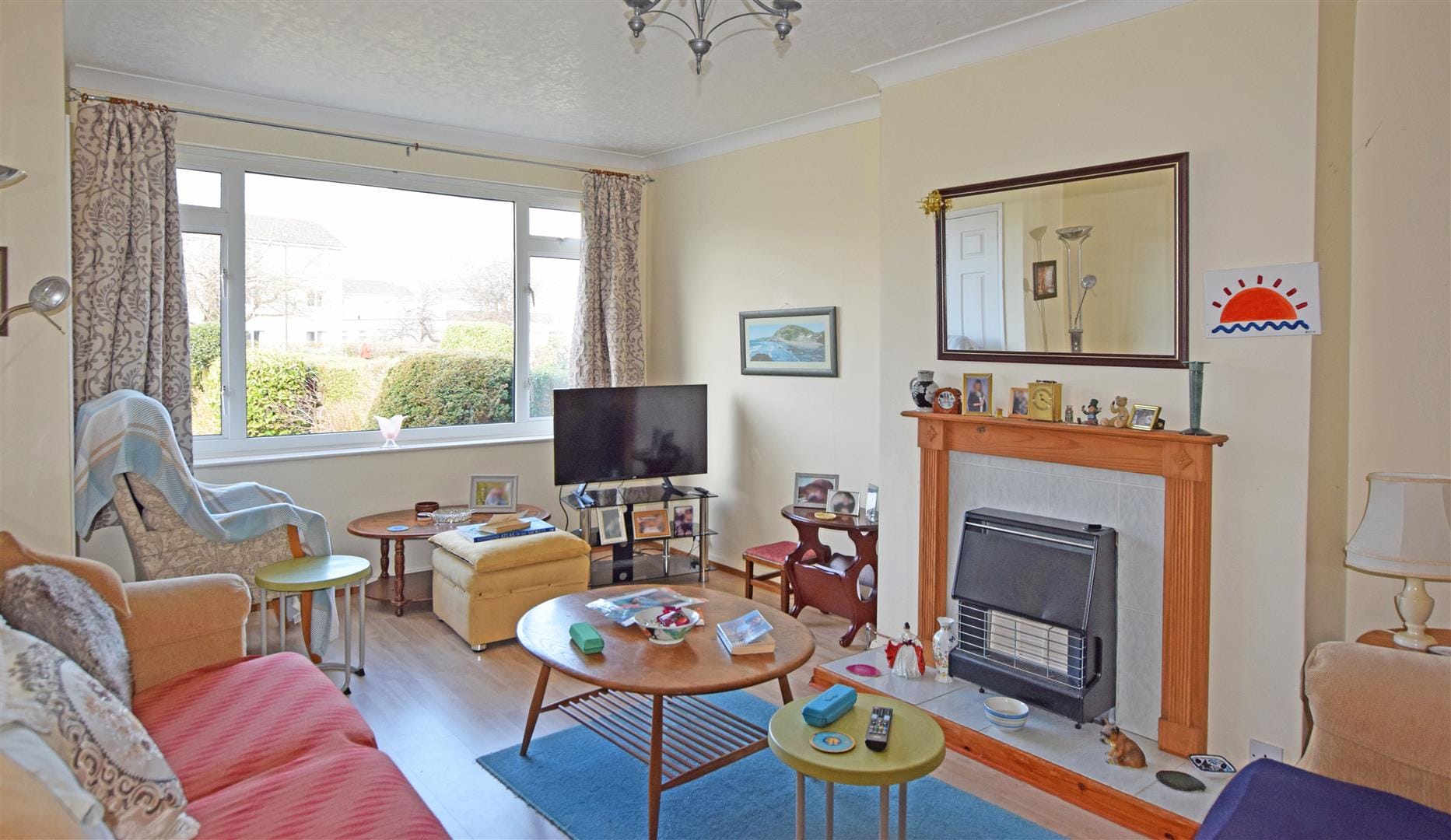 Step through a timber door into a spacious and inviting lounge, a bright and airy retreat filled with natural light courtesy of the large front-facing window and its desirable south-west aspect. The room is generously sized for lounge furniture and features a prominent chimney breast housing a gas flame fire with an ornate timber mantel, complemented by a tiled surround and hearth.