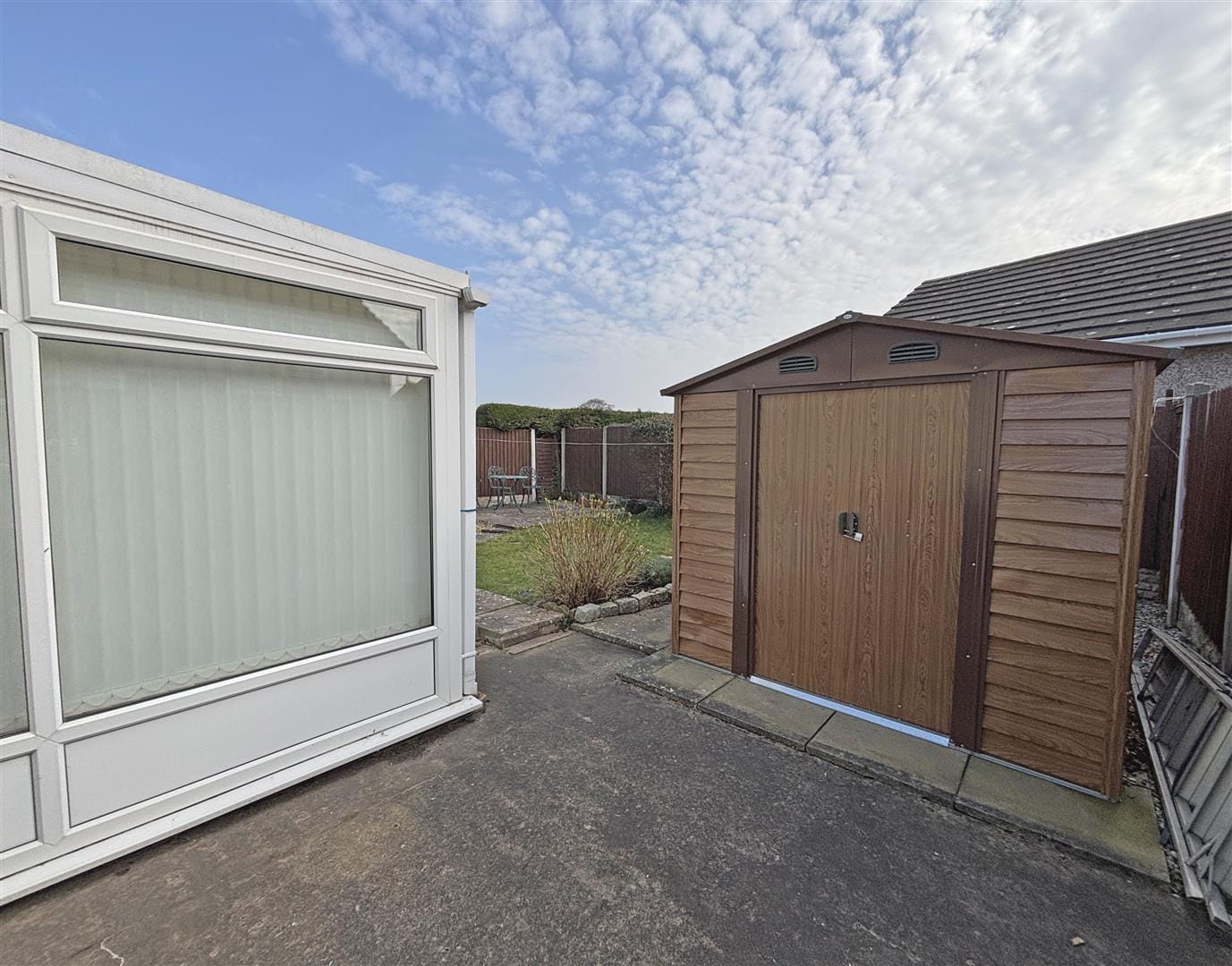The rear garden has been designed with low maintenance in mind, featuring a combination of paving stones, stone chippings, and a manageable lawned section. Enclosed by timber fencing, the space offers privacy and the potential to create your own outdoor retreat. There’s also ample room to erect a garden shed, providing additional storage for tools and outdoor equipment. A handy side pathway offers easy bin access.
